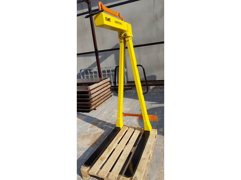 Euro-vidle, model EZP-S vyvažovaný převěšením a pevnou délkou vidlic 100cm. Paletové vidle vyvažované převěšováním pracují na principu přesouvání závěsného oka do dvou poloh. Jedna poloha je určena pro manipulaci se zatížením, druhá s prázdným závěsem. Dále je zde třetí poloha oka, která umožní snadné vysunutí závěsu z palety. Výška nákladu u těchto závěsů je 160 cm. Vnější rozteč vidlic 54-85 cm. Závěs na palety je možný použít na hydraulickou ruku, jeřáb, HR,apod. Kvalitní zpracování.