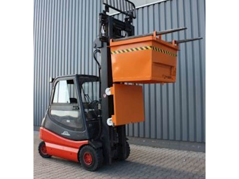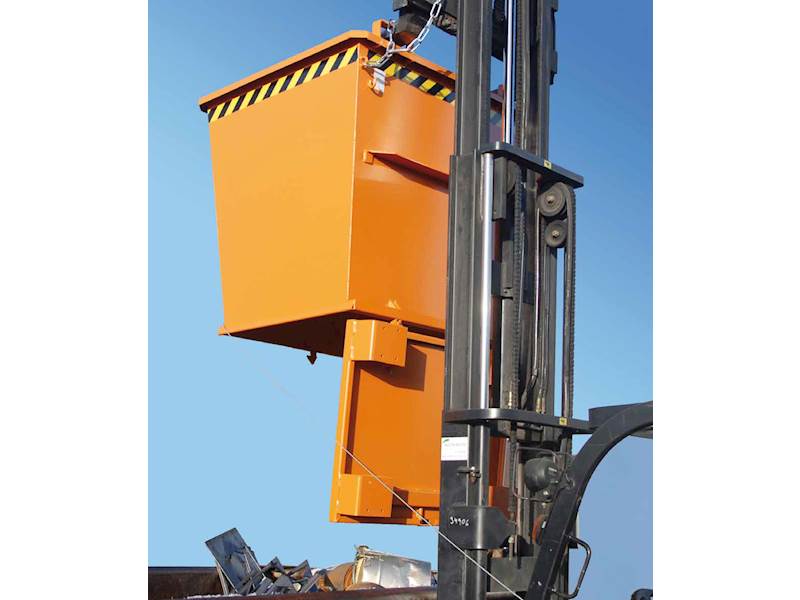 Nosnost až 2000 kg. Robustní zesílená konstrukce. Výklopné dno se zavře automaticky ve chvíli, kdy kontejner dosedne na zem. Úhel otevření 90°. Ochrana proti neúmyslnému vyklopení. Kontejnery lze stohovat, pokud je víko zavřené. Přídavné zařízení pro VZV.